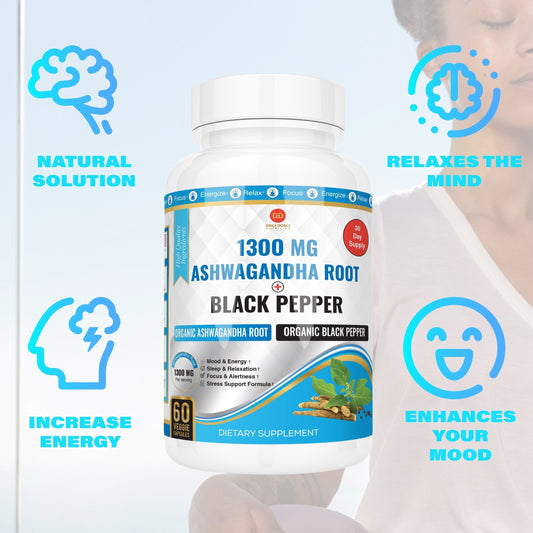 (5 Pack) Black Pepper & Ashwagandha Capsules Bloating Relief Thyroid Support Mood Support Supplement Stress Relief Supplement Ayurveda Products Supplements for Women & Men (60 Count)