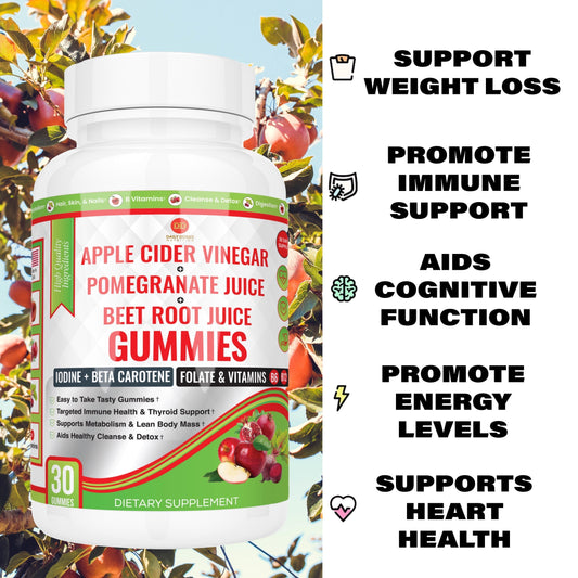 (120 Count - 4 Month Pack) Apple Cider Vinegar Gummies with Vitamin B12, Vitamin B6, Beet Root, and Pomegranate - Dietary Supplement Edible Fitness Health