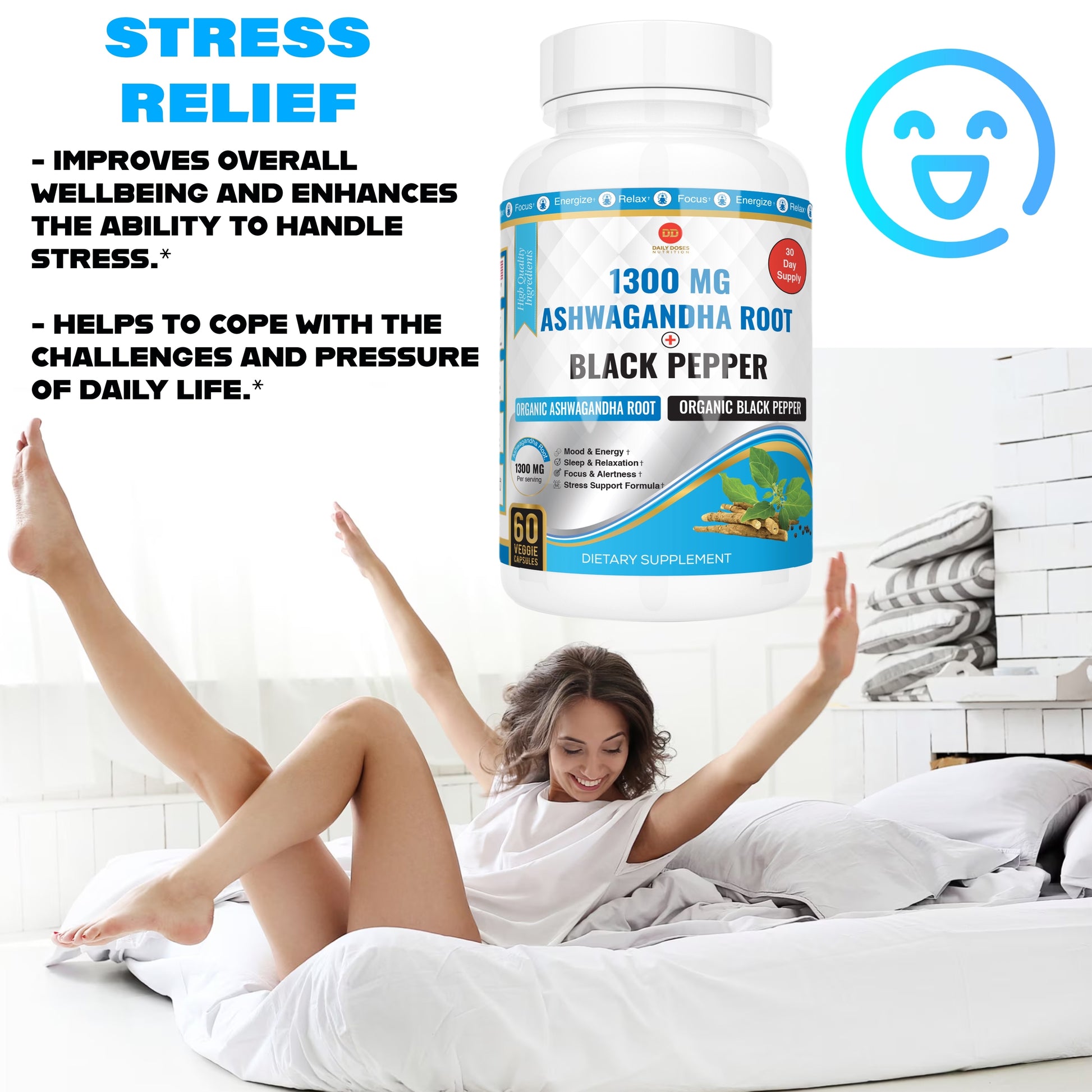 In addition to its stress-relieving properties, our ashwagandha capsules also support a healthy lifestyle. By boosting immune function, it helps support body's natural defenses, keeping you feeling strong and resilient.