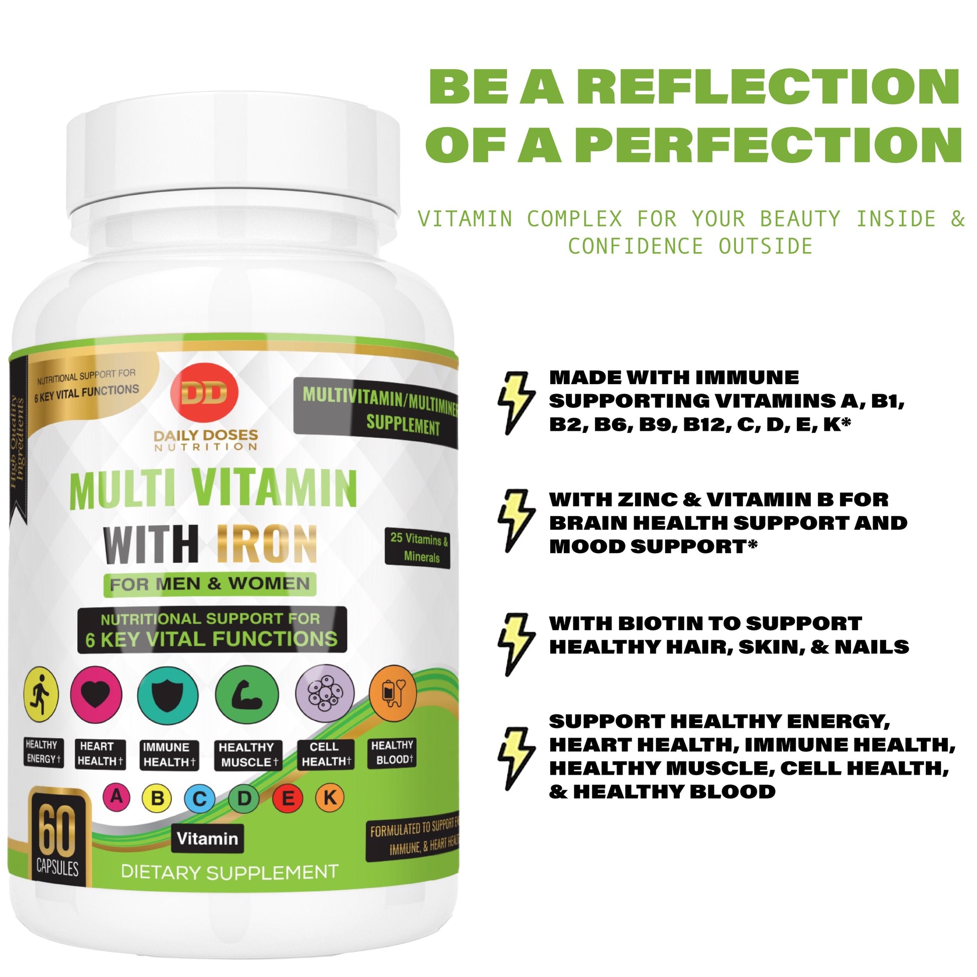 Invest in your health with our best multivitamin for women and men. Trust in our carefully crafted blend of essential nutrients, including iron, vitamins, and minerals, to provide the foundation for your well-being. With our multivitamin, you can embrace a vibrant, energized life. Take charge of your health today and experience the difference!